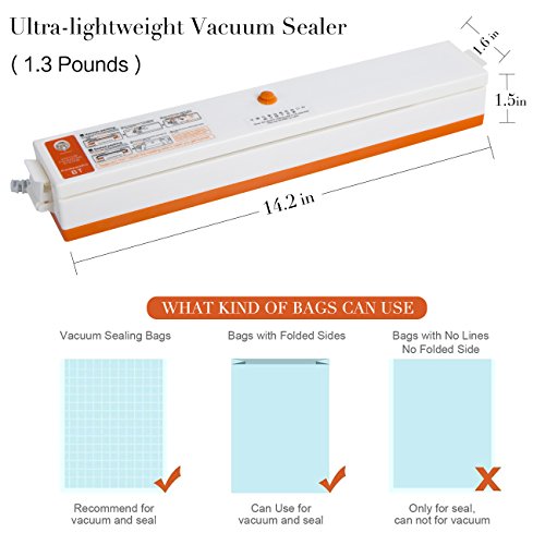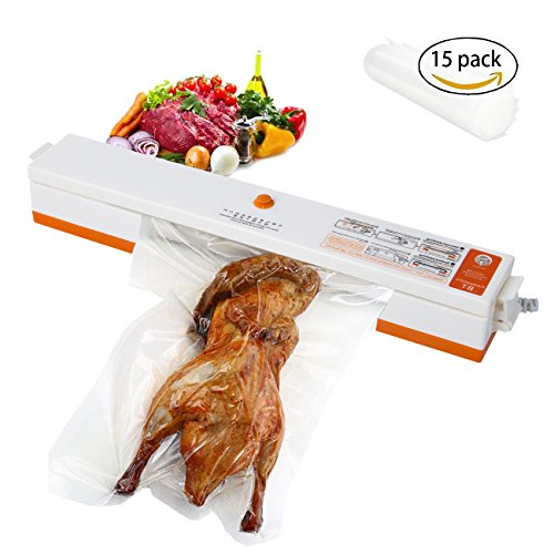 Vacuum Sealer, AutomaticVacuum Sealing System, Vacuum Sealing Machinefor Food Preservation and Storage including Starter Kit and 15 Sealer Bags for Free,Compact Vacuum Sealer for Food