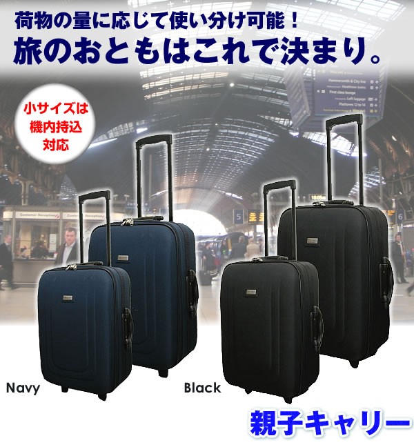旅行にとっても便利なソフトキャリーカートが、大小の親子セットで登場です。小さいキャリーは大きいキャリーの中に収納可能!荷物の量や用途に応じて使い分け♪小は機内持ち込み対応。 ※サプライヤー直送品 ご注文後、当日~1営業日後の出荷となります【商品名】親子キャリー ネイビー89920