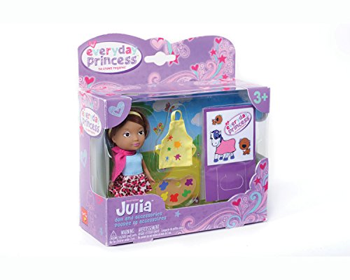 Julia is 4.5” tall; her easel is 2”x2”. Julia is one of the collectibles in the Everyday Princess Line, along with Emma, Sophie, and Bianca.