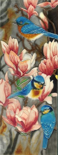 Continental Art Center KD-085 6 by 16-Inch Blue Bird with Magnolia Flower Ceramic Art Tile