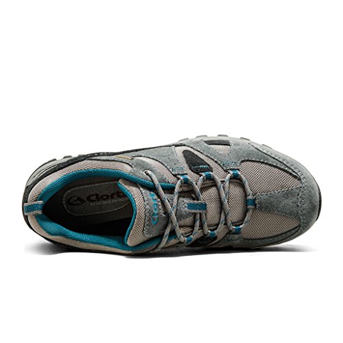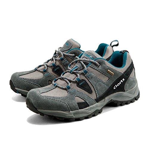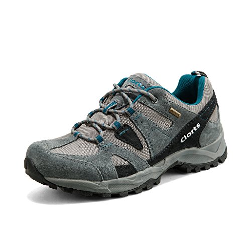 Clorts Men's Grey Blue Suede Leather Uneebtex Waterproof Outdoor Trekking Hiking Shoe HKL-828B US10