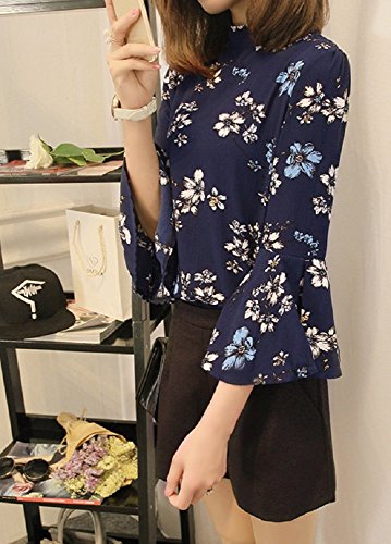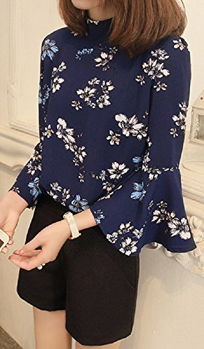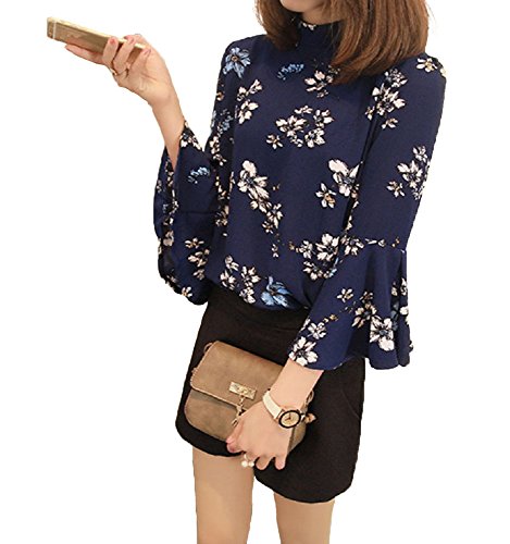 -. Title : 【Smile LaLa】 レディース ハイネック フレア フリル スリーブ トップス カットソー ブラウス シャツ 薄手 七分袖 花柄 清楚