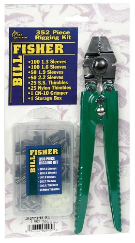 Studio : Big Rock Sports Publisher : Big Rock Sports Binding : Sports Product Description Billfisher RK352 Rigging Kit 351 Pc These Billfisher rigging kits contain 350 of the most popular items for offshore rigging. The 351 piece kit contains our CN-10 Crimper, both come in a handy storage box Contains 100 nos 1.3 1.6 size black double sleeves, 50 nos 1.9 2.2 size Black Double Sleeves 25 nos Small Stainless Thimbles and 25 large Nylon Thimbles. 0