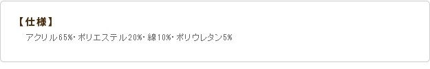 材質:アクリル65%、ポリエステル20%、綿10%、ポリウレタン5%