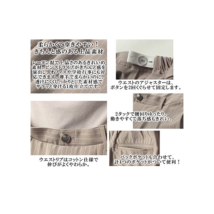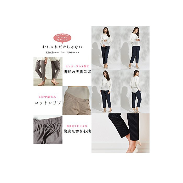 원본상품명: Sweet Mommy マタニティパンツ ボトム センタ?プレス加工 大きいサイズ ピンストライプ 妊婦 柔らか美シルエット テ?パ?ド パンツ ウエスト調節機能 コットンウエストリブ オフィス ポケ