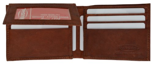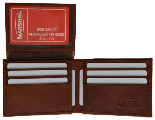 -. Binding : Apparel -. Brand : Marshal -. Department : mens -. Feature : Made of Genuine High Quality Leather / Pull Up Flap with 2 ID Windows and 6 Credit Card Slots. / 3 full sized money pockets in the back, one of which has a zipper closure / 4.1/4" x 3.1/4" when closed. / Stylish and Durable Wallet -. ProductGroup : Apparel -. ProductTypeName : ACCESSORY -. Size : One Size -. Title : Marshal Men's Bifold Wallet With Flip Up ID Window and Back Money Zipper Pocket