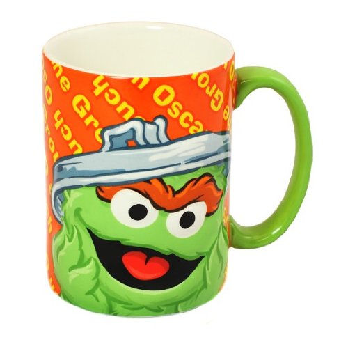 -. Brand : GUND -. Color : Green / Orange -. EAN : 0028399759750 -. Feature : Ceramic construction with full color graphic / Holds 12 oz. / Makes a great gift / Dishwasher & Microwave safe -. Label : Gund -. Manufacturer : Gund -. MPN : 075975 -. NumberOfItems : 1 -. PackageQuantity : 1 -. PartNumber : 075975 -. ProductGroup : Kitchen -. ProductTypeName : KITCHEN -. Publisher : Gund -. Size : 14 ounce -. SKU : GU075975 -. Studio : Gund -. Title : Sesame Street Oscar the Grouch Mug 14 oz -. UPC : 028399759750