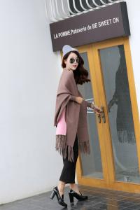 ケープ ポンチョ フリンジ バイカラー 羽織り アウター カーディガン えり 秋冬 プチプラセール タッセル