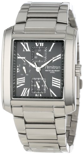 Armitron Men's 20/4870BKSV Black Dial Square Silver-Tone Multi-Function Bracelet Watch