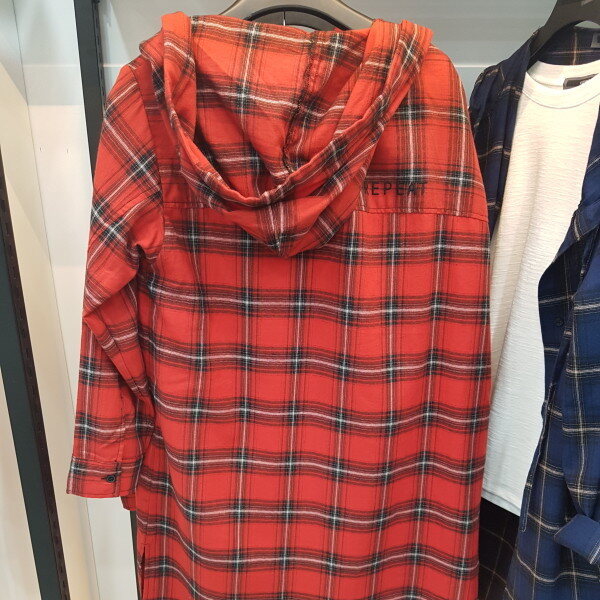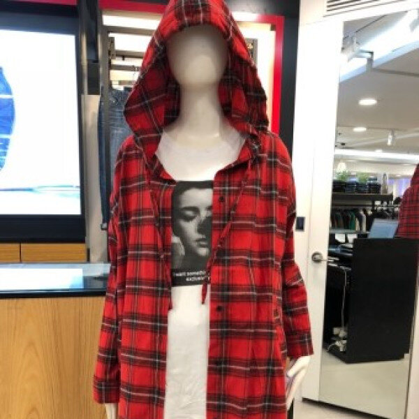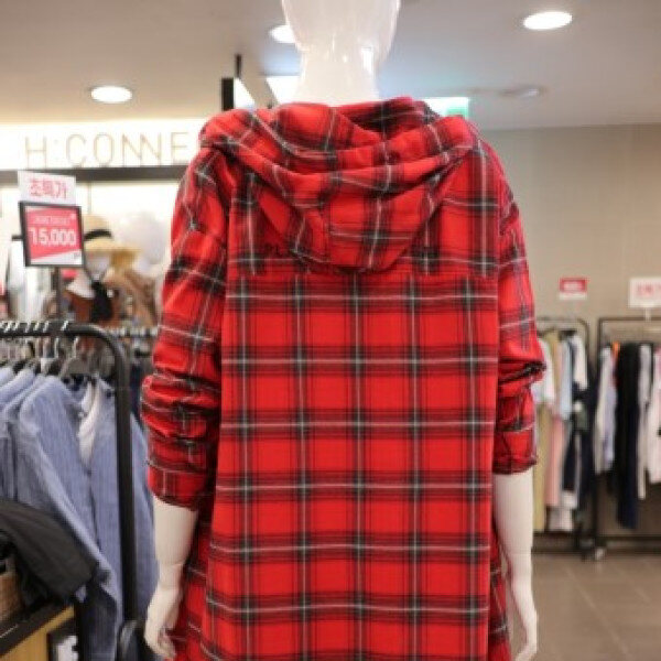 후드디자인으로 캐주얼 하면서도 러블리한 롱기장의 체크셔츠입니다