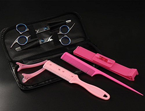 Great finish, very smooth, sharp and hardly rust. Great accessory for DIY haircut or hairdressing use. 7 in 1 Professional Stainless Steel Hairdressing HairThinning Scissors. Straight edge tool included in the hair cutting kit is ideal for you to cut bangs perfectly. A magic comb with blade inside what makes it easy to thin your bangs or cut your malnourished hair. Specification: