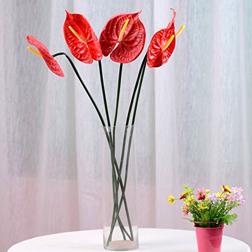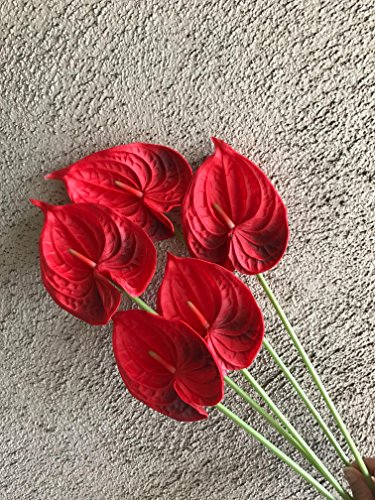 24" Real Touch artificial Anthurium Lily flowers for home decor (5 pcs) (Red)