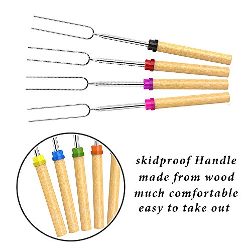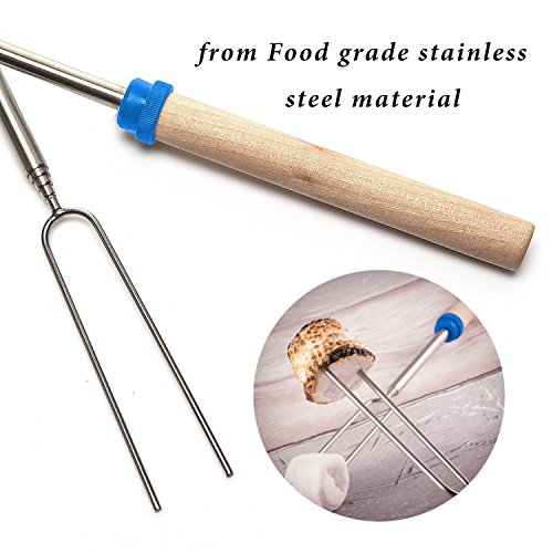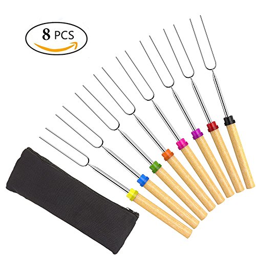 Studio : Bojafa Publisher : Bojafa Product Description Product Features: ?8 Pcs of High-Quality Extra Long Extendable Telescoping Stainless Steel BBQ Forks ?Solid Wooden Handle Design won't burn your hands like metal handle ?Telescopes from 12 inches to 32 inches to keep yourself and your family safe when roasting ?Non-sharp prongs can keep Kids Safe when using the roasting stick ?Perfect for smores, sausages, wiener's, hotdogs and even vegetables and fruits ? Canvas pouch convenient for camping trips or storing at home