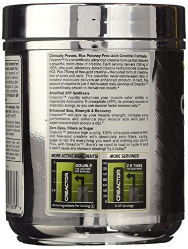 Creactor features 750 milligrams of free-acid creatine, which is the purest form of creatine that is free of acids and salts