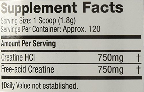 Each serving delivers 750 milligrams of 100% ultra pure, laboratory tested creatine hydrochloride (creatine HCl)