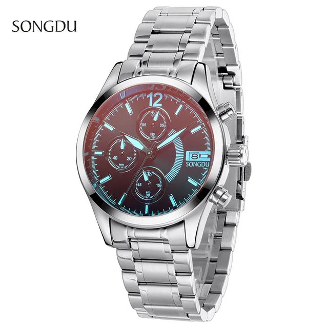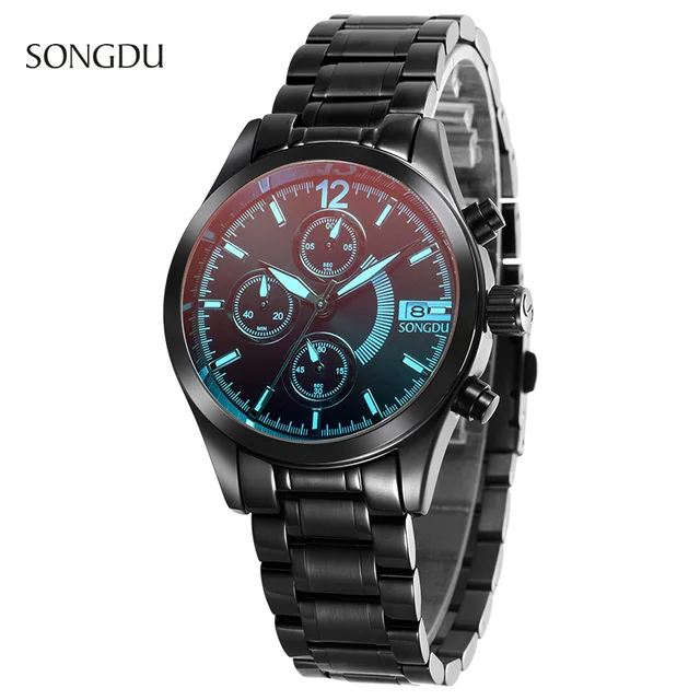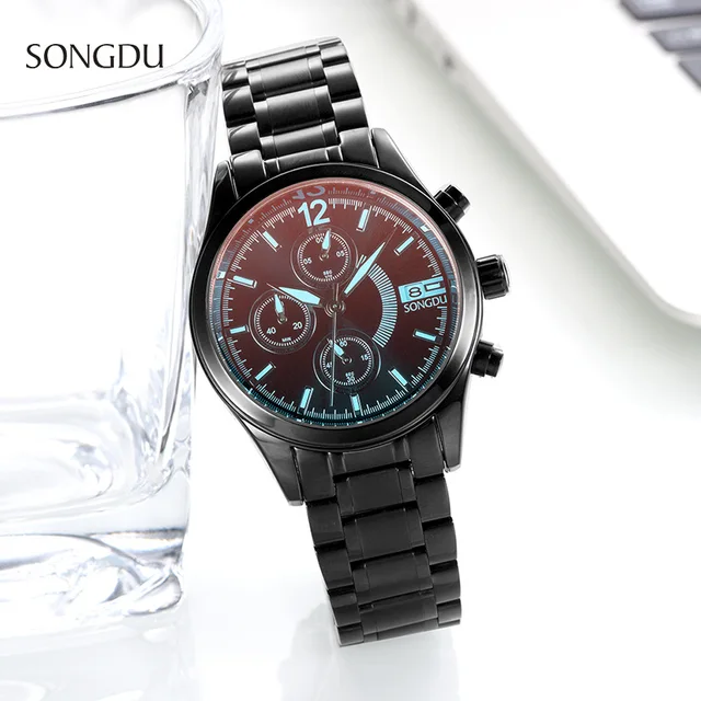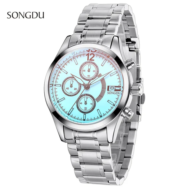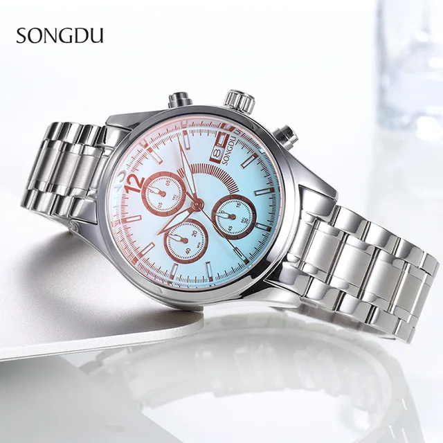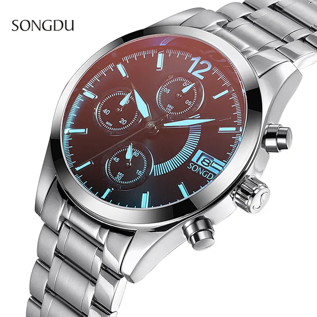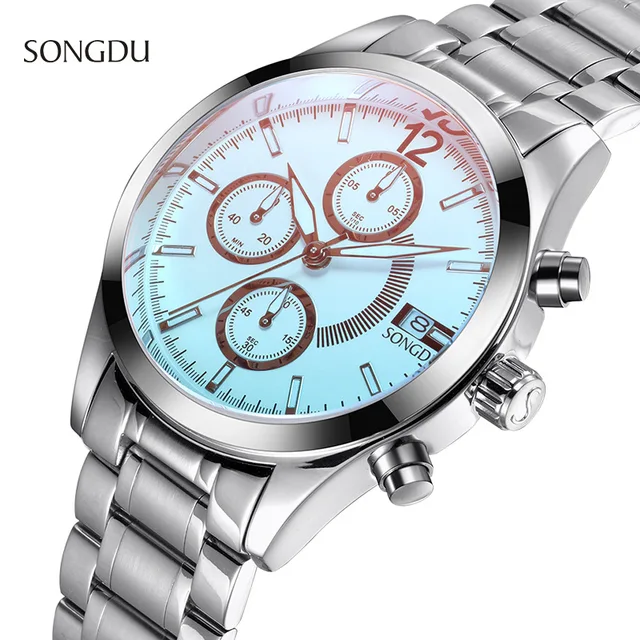 | [해외] 2017 새로운 SONGD 패션 캐주얼 간단한 시계 남성 세 눈 고급 방수 달력 스틸 스트립 남성 석영 시계 reloj 험 브레 |