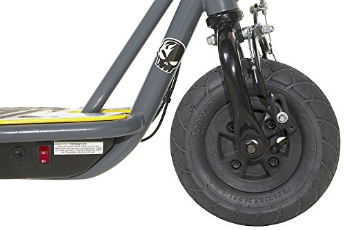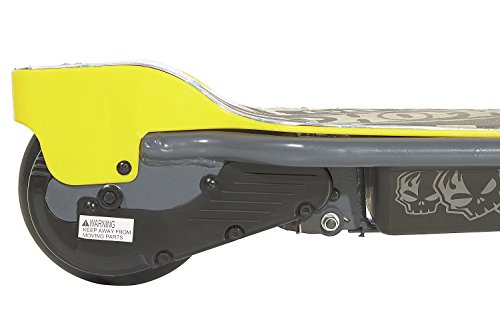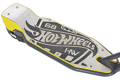 Hot Wheels fans will be ready to have a blazing good time on this dynacraft Hot Wheels 24V electric scooter. Be prepared to race down the streets on this black and grey electric scooter with custom Hot Wheels graphics! equipped with a high-torque 24-volt electric motor, single speed twist grip throttle and caliper brakes on the front wheel, this scooter is guaranteed to turn heads.Feature