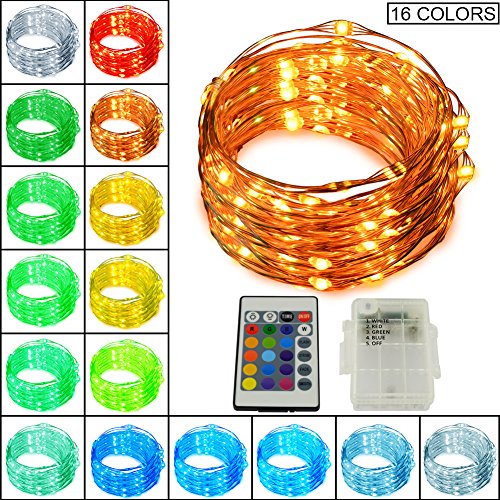 Led String Lights, 16 Colors Options 50led Battery Powered String Lights with Remote Waterproof Color Changing Light Patio/Parties/Wedding/Bedroom String Light - Copper Wire Light 16foot