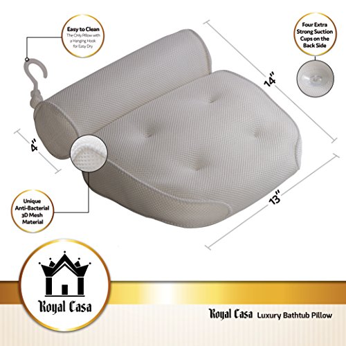 PRODUCT DIMENSIONS - Measures 14" x 13" x 4". Provides 4" padding to your head, neck and shoulders. Helps to reduce tension and relax, and to have a true home spa experience.