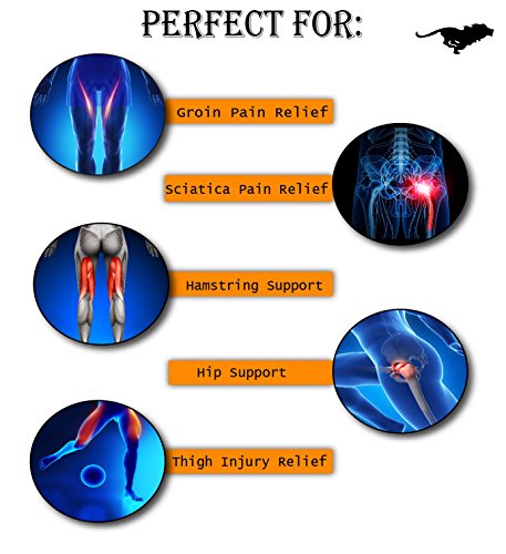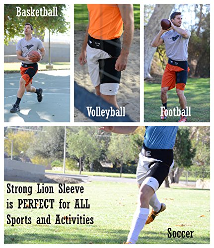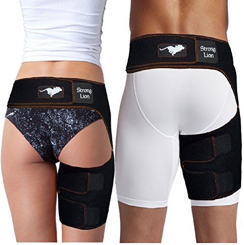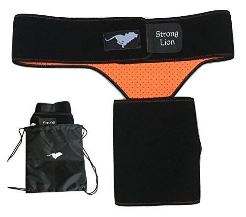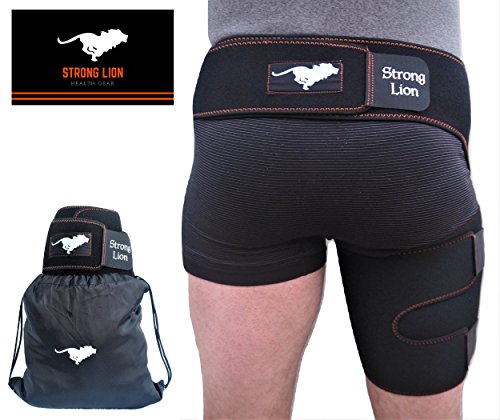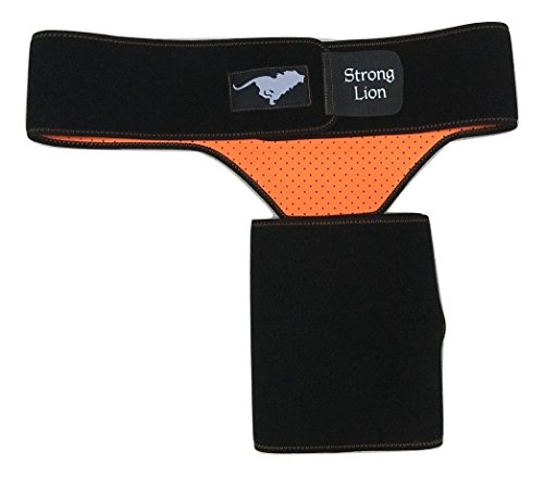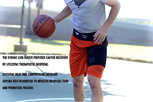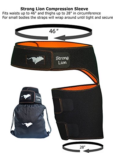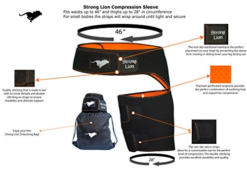 Studio : Strong Lion Publisher : Strong Lion Binding : Health and Beauty Product Description STRONG LION COMPRESSION SLEEVE : ? Increases blood flow through adjustable compression. ? Minimizes effects of muscle overuse. ? Aids in Injury Rehabilitation. ? Relieves pain from groin strains and pulls. ? Provides support and relief from occupational injuries, sports injuries, and surgery rehabilitation. ? Heat therapeutic neoprene soothes and heals muscles and joints. SIZE: ? Can be worn on either the left or right leg for men and women. ? Adjustable sizing for the perfect fit, which will leave you with plenty of material on both the waist and thigh to loosen or tighten as needed. (Fits waists up to 46" and thighs up to 28" in circumference at widest point) STAYS IN PLACE: ? The Strong LionTM waistband prevents the thigh wrap support from slipping or sliding during any physical activity. ? The strap maintains the perfects placement up on the thigh, which sets Strong Lion apart from other hamstring braces or thigh compression sleeves, which constantly slide down the leg and need to be pulled up and re-adjustment during light activity. PACKAGE: ? Includes One Strong LionTM Compression Sleeve and One Strong LionTM Drawstring Bag. Enjoy your free Strong LionTM Drawstring Bag to protect and carry your Strong LionTM Compression Sleeve as well as any other workout essentials that you need to take on the go. 0
