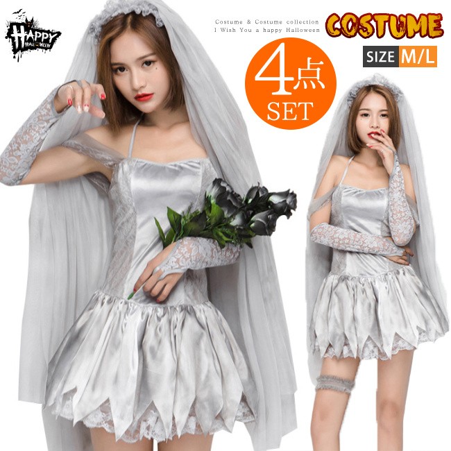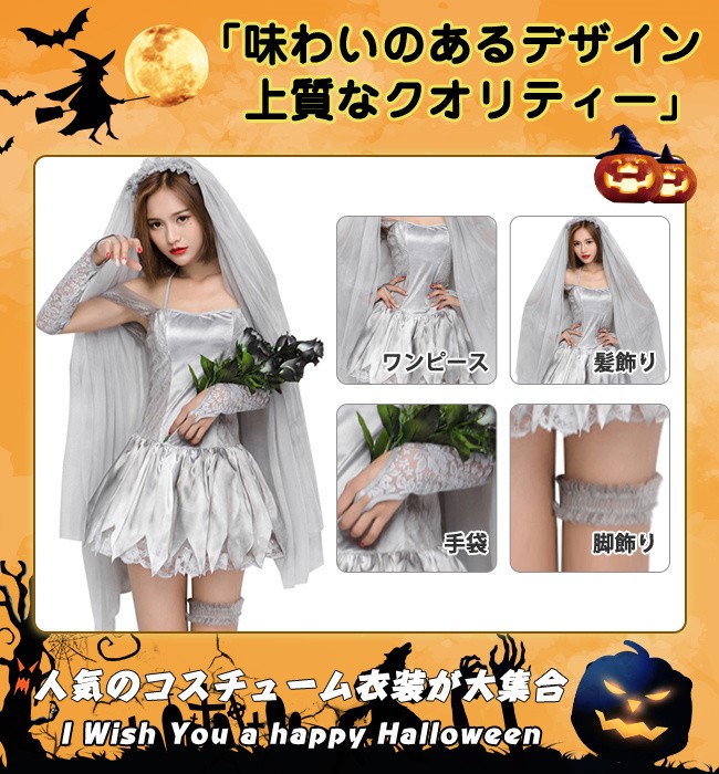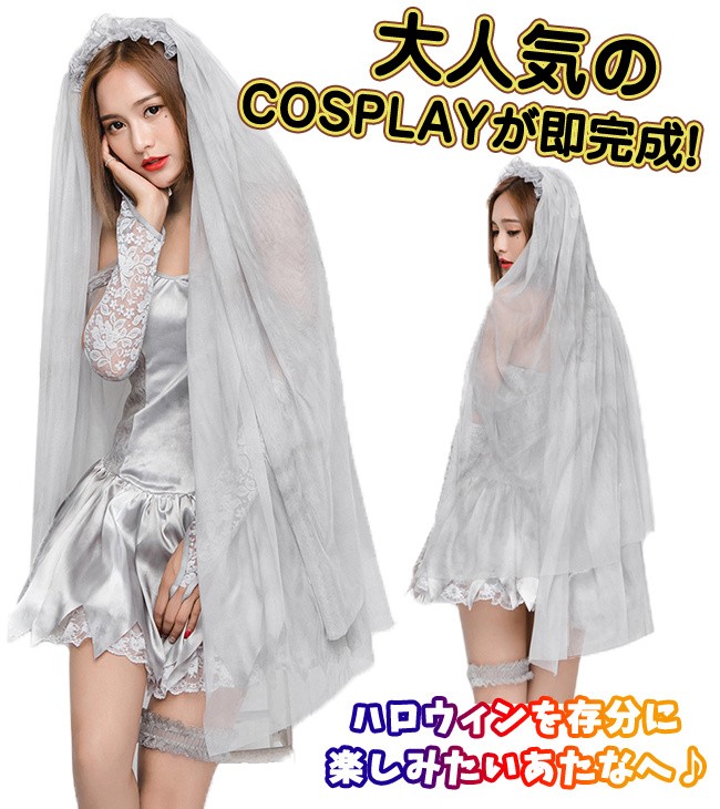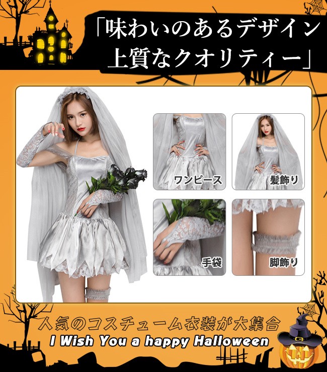 ハロウィン コスプレ 衣装 レディース ホラー系ブライド ゾンビ花嫁 ドレス セクシー コスチューム 大人 仮装 変装 服 セットアップ ハロウィーン パーティーグッズ イベント用品 余興 女性用 halloween cos