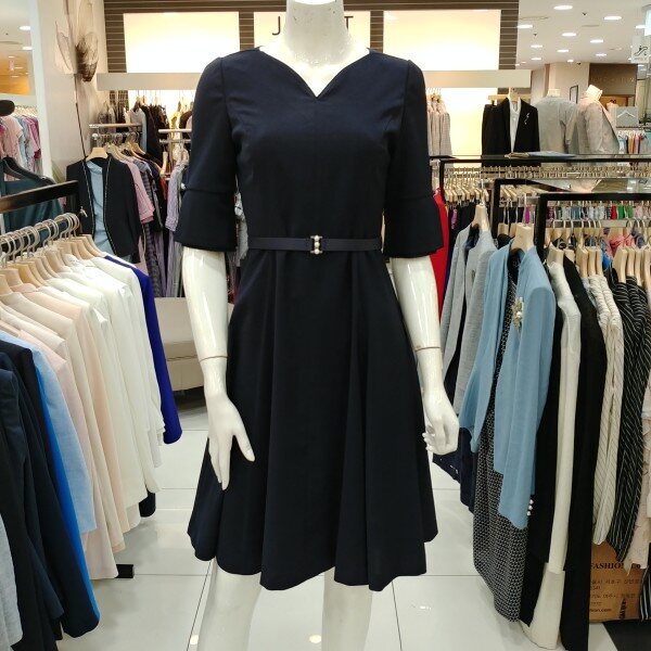 브이넥 벨티드 원피스로 깔끔하여 여성스러운 느낌의 디자인입니다.