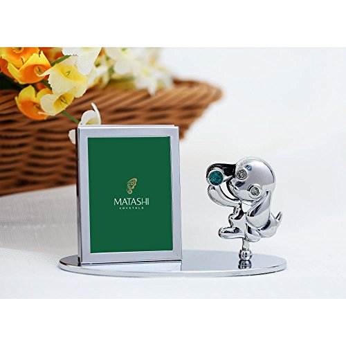 "2018 Year of the Dog" Chrome Plated Silver Puppy Picture Frame w/ Green Crystal Home and Table Top Ornament | Photograph Memory Keeper for Desktops,...