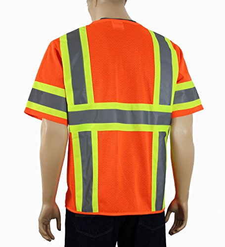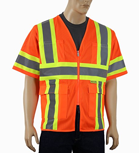 Safety Depot Class 3 ANSI ISEA Approved 6 Pocket Safety Vest Breathable High Visiblity M7138 (Mesh Orange, XL)