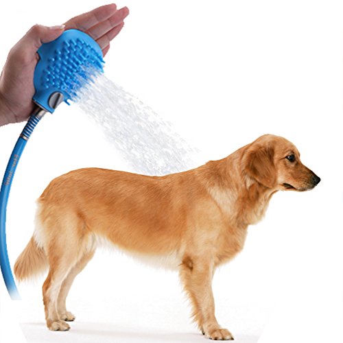 MASSAGE The brush is Silicon, every touch like gentle massage, reduce the stress of anxious pets during bathing; SAVE WATER Easy to adjust Variable Flow Lever toggles from OFF to Light to Full Flow, saving water and detectile sprays; EASY to HANDLE One-size fits all strap attaches securely to your hand, both adult and child could enjoy the pet grooming; EASY to INSTALL and REMOVE This handheld pet grooming tool comes with 7.5ft long pipe and 2 hose adapters to fit 0.6 inches standard faucet, quickly connects to garden, house or shower DURABLE Our product material is of high quality. In addition, there is coil spring in the connection of pipe and brush, which protect the bathing tool properly. Specifications Condition: 100% Brand New Material: Silicon, ABS plastic, metal material Color: Blue Hose length: About 8 Feet (98.42") Package Included: 1 x silicon brush 1 x blue hose 2 x faucet connector 0