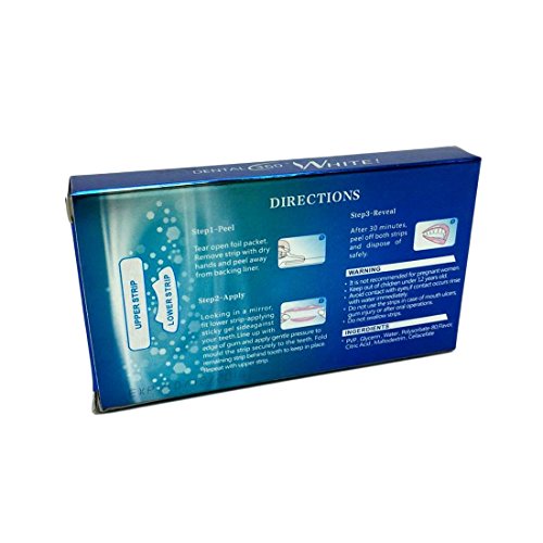 Studio : Joylive Publisher : Joylive Binding : Misc. Product Description Item Type:Teeth Whitening Weight:Approx.50g Application:Dental Care Size:1.5*6.5*11.5cm Material: Gel Quantity:28pcs/14pairs Usage: Step 1: Peel Brush teeth, tear open foil pouch and remove lower strip from back liner with a dry clean hand. Step 2: Apply Fit lower strip-apply the sticky gel side against your teeth. line up with the edge of gums and apply gentle pressure to mould the strip securely. Fold over the remainder of the strip. repeat for upper strip. Step 3: Reveal After 30 minutes gently peel off both strips-dispose and rinse mouth to remove gel residue. Now you are on the way to a Brighter, Whiter Smile! 1.This product is not recommended for pregnant women or children under 12 years old. 2.Do not use the strips in you have mouth ulcers, gum injury of after oral operations. 3.Avoid contact with eyes. If contact occurs rinse with water immediately. 4.Do not swallow strips. Disclaimer: Research and experience show that the whitening effect from the treatment usually lasts for years. Teeth may darken faster if exposed again to staining products such as tobacco, coffee or juices. However, the teeth will probably remain significantly lighter than if no treatment had been done. Two to four nights of tooth bleaching performed at six month to four year intervals may be all that is necessary.Some difficult, darker stains may naturally require longer treatment than some milder stains. Depending on your teeth and type of staining, results will vary Package Includes:14 * Teeth Whitening Strips;1 * Teeth Shade Guide;1*Instruction Tips:Please be aware that there might be difference between the phsyical items and pictures because of varied monitoring and light, and the size might differ from 1-3cm according to manual measurement. 0