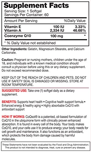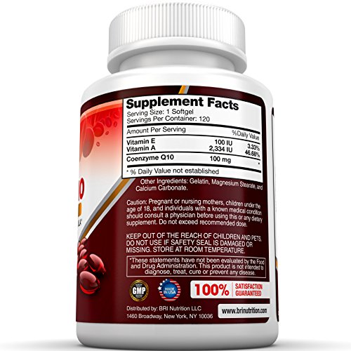 -. Binding : Health and Beauty -. Brand : BRI Nutrition -. IsAdultProduct : 0 -. Label : BRI Nutrition -. LegalDisclaimer : *These statements have not been evaluated by the Food and Drug Administration. This product is not intended to diagnose, treat, cure, or prevent any disease. -. Manufacturer : BRI Nutrition -. ProductGroup : Health and Beauty -. ProductTypeName : HEALTH_PERSONAL_CARE -. Publisher : BRI Nutrition -. Studio : BRI Nutrition -. Title : BRI Nutrition COQ10 Ubiquinone - 2.6x Higher Total Coenzyme Q10 COQSOL® Absorption than normal COQ10