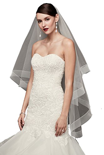 Binding : Apparel Product Description There are several considerations. Where will the ceremony take place? If it is indoors, a longer length is definitely appropriate. If it is outside, keep in mind that a longer length like a Cathedral veil will likely snag on debris/vegetation/sticks on the ground. Also, it may get a bit frustrating if there is much of a breeze. Another question to ask yourself is what look am I going for? If you want a more dramatic, traditional look, a longer length is great! A Chapel length veil is a nice length if you want drama but not too much veil dragging behind you, which can easily be stepped on. Fingertip length veils seem more youthful and carefree. They are also great paired with shorter tea-length style dresses. If your dress is a slim A-line or column silhouette, a narrower Chapel style would compliment the shape beautifully. If you have a fuller, ballgown style, a wider Cathedral length would frame the higher drama of your skirt nicely. 0