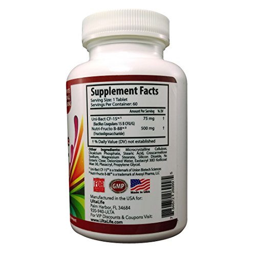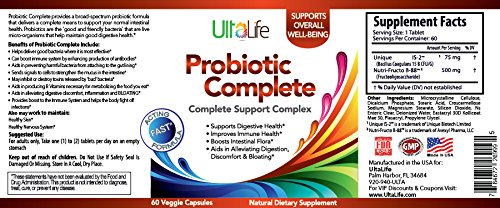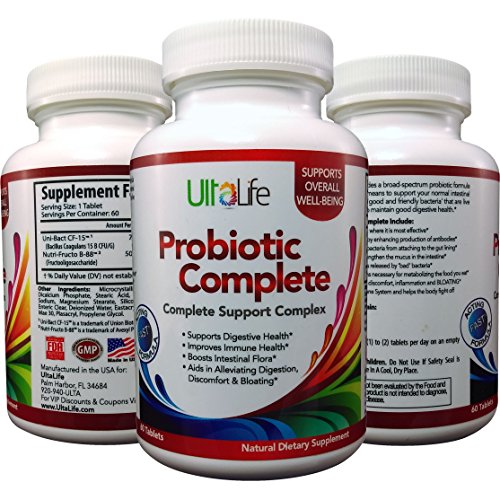 -. Title : #1 Best Probiotic --UltaLife's Probiotic Complete Provides a Wide-spectrum Probiotic Formula that Delivers a Complete Support to Your Normal Intestinal Health. It Delivers the 'Good & Friendly' Bacteria that Help Maintain Good Digestive Health. Boosts Immune System, Aids in Blocking Unwanted Bacteria in the Gut Lining, Aids in Relieving Digestive Discomfort, Inflammation and BLOATING. Money Back Guarantee. 100% Natural Dietary Supplement. Supports Overall Well-being. This Is the One You Can Trust.