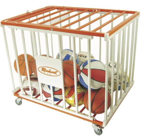 Markwort basketball steel cage 36 ball capacity. Holds up to 36 basketballs. Very strong and sturdy. Tubular steel. 76x72x102 cm.