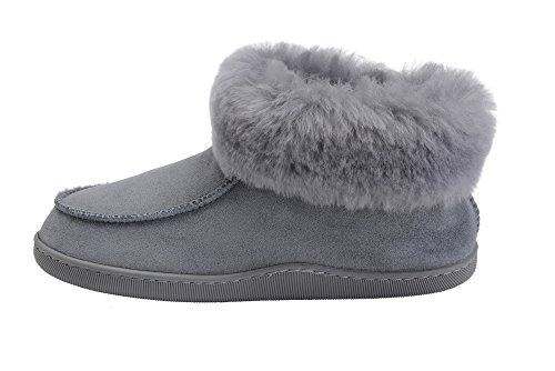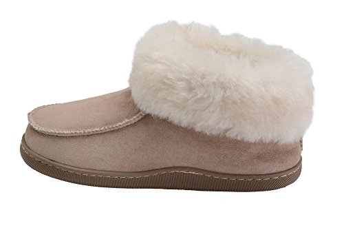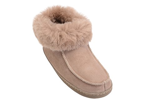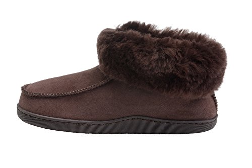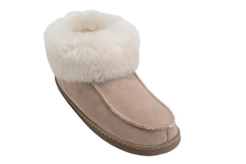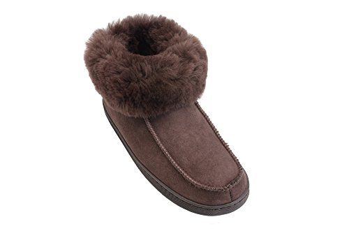 -. Binding : Apparel -. Brand : Rusnak -. Department : mens -. Feature : These wool lined sheepskin bootie slippers are the ultimate in comfort and luxury for men and women / The natural wool lining and cuff increases thermal insulation and keeps your feet warm and toasty in the winter months / The flat, lightweight rubber sole provides additional stability, flexibility and overall maximizes the comfort of the foot for the wearer with reinforced stitching for added durability. / These slippers are available in a wide range of sizes and colours so please consult with the size guide shown as an image for an accurate fit. / Made In Europe -. ProductGroup : Shoes -. ProductTypeName : SHOES -. Title : Mens Womens Genuine Sheepskin Bootie Slippers House Shoes with Warm Wool Linning