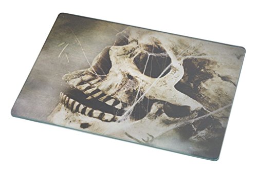 Rikki Knight RK-LGCB-943 Skull in Stones Design Glass Cutting Board, Large, White
