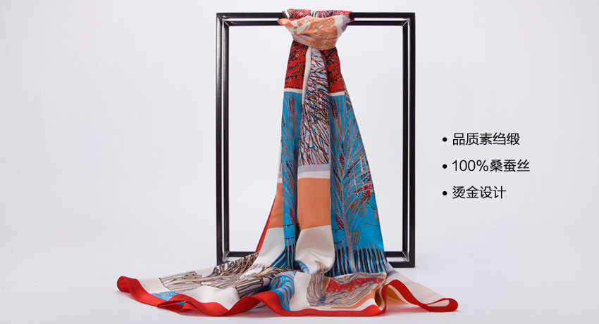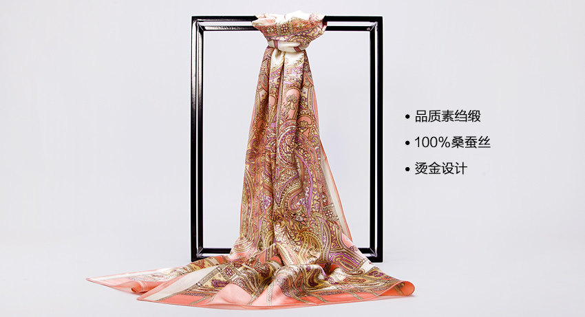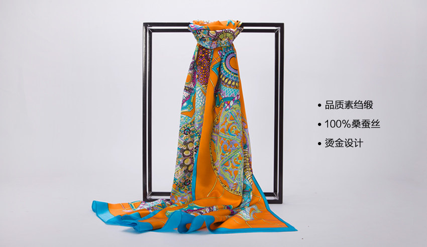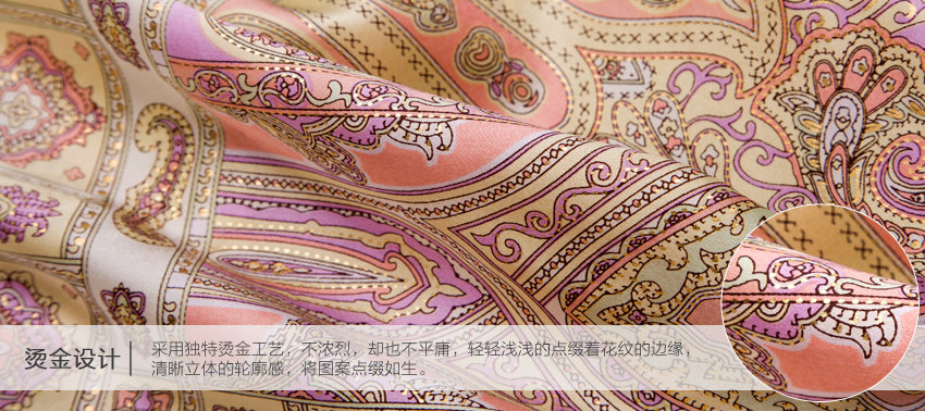 而这款丝巾采用独特烫金工艺,