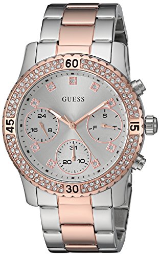 -. Title : GUESS Women's U0851L3 Sporty Silver-Tone Watch with Silver Dial , Crystal-Accented Bezel and Stainless Steel Pilot Buckle