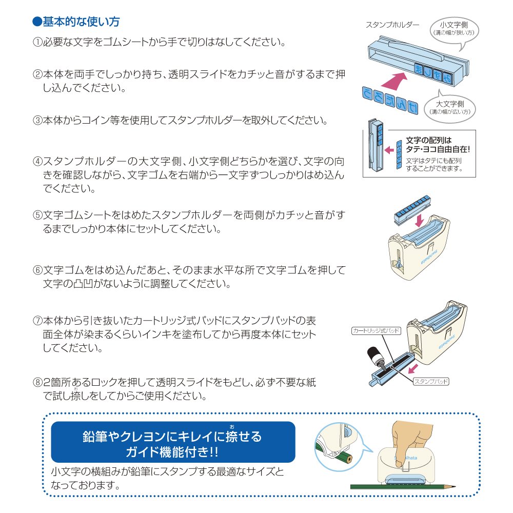 · By simply setting the rubber sheet, you can easily create your own name stamp.
