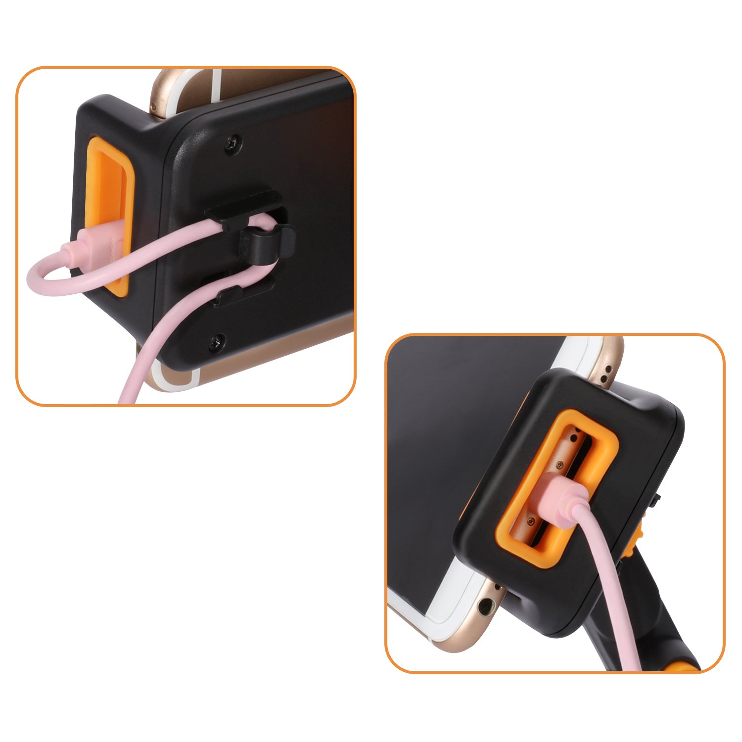 ● The holder has a rectangular hole through which the cable can be passed, you can charge from a cigar socket etc while wearing a smartphone or tablet.