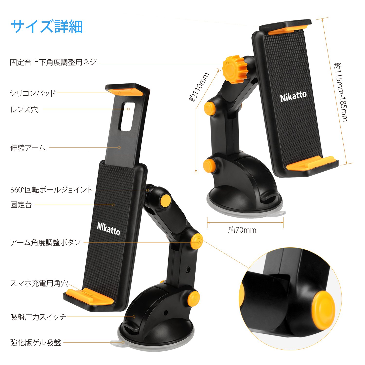 Stability is excellent because the pedestal can be firmly fixed with a strong gel sucker.