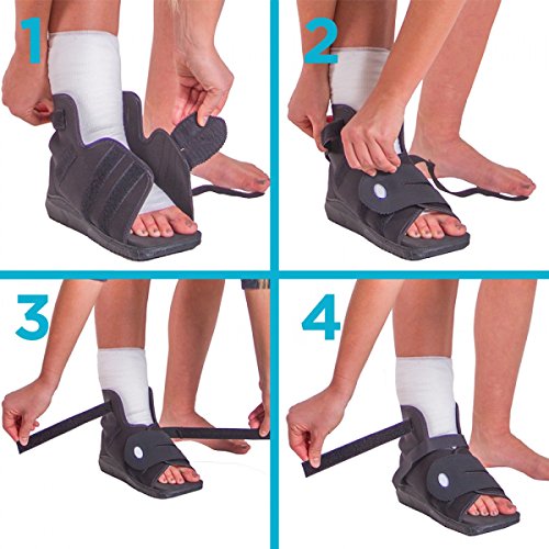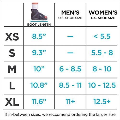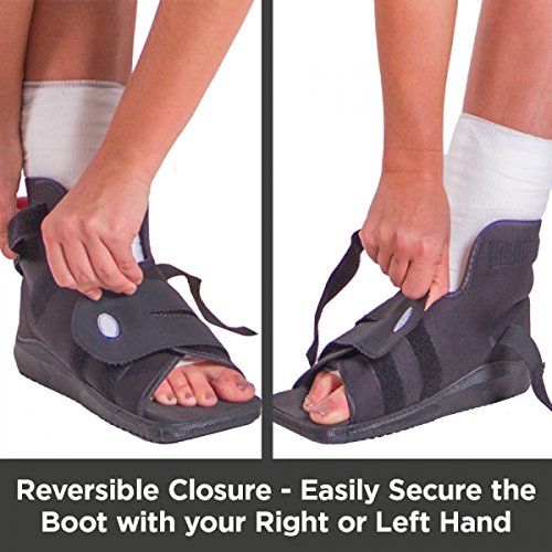 -. Feature : This foot cast boot leaves room for casts or bandages that the patient is wearing, so you can walk comfortably while protecting your foot and toes and keeping your bandages clean! / Foot closure can be easily adjusted and flipped to accommodate both left handed and right handed people. Can be worn on left or right foot. / Protective square toe design gives plenty of room to comfortably allow for bulky casts or bandages, while protecting your toes / Foam insole provides maximum comfort and support for walking while recovering after surgery, foot fractures, toe injuries, metatarsal breaks and more. / Can be worn on left or right foot. To choose your size, measure the length of your foot from the tip of the toe to the back of the heel. Available in sizes XS-XL