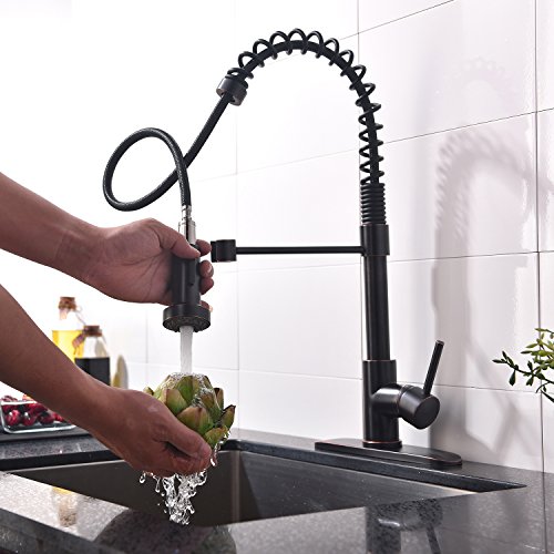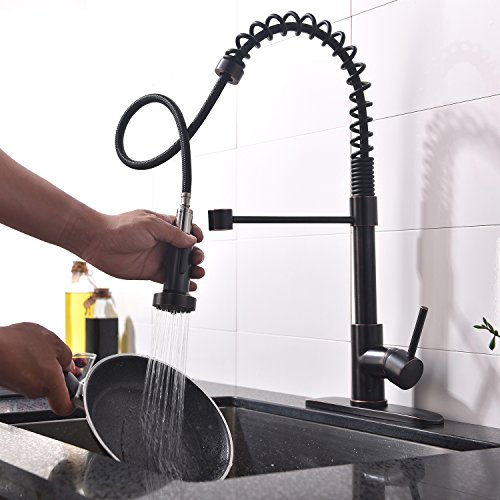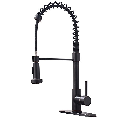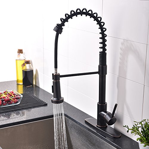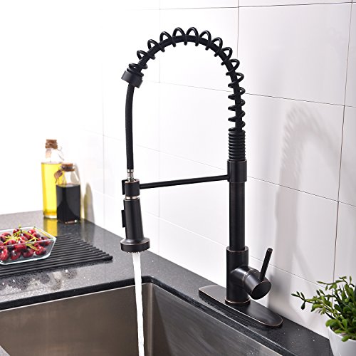 KINGO HOME Antique Single Handle Stainless Steel Pull Down Sprayer Oil Rubbed Bronze Spring Kitchen Faucet, ORB Kitchen Sink Faucet with Deck Plate