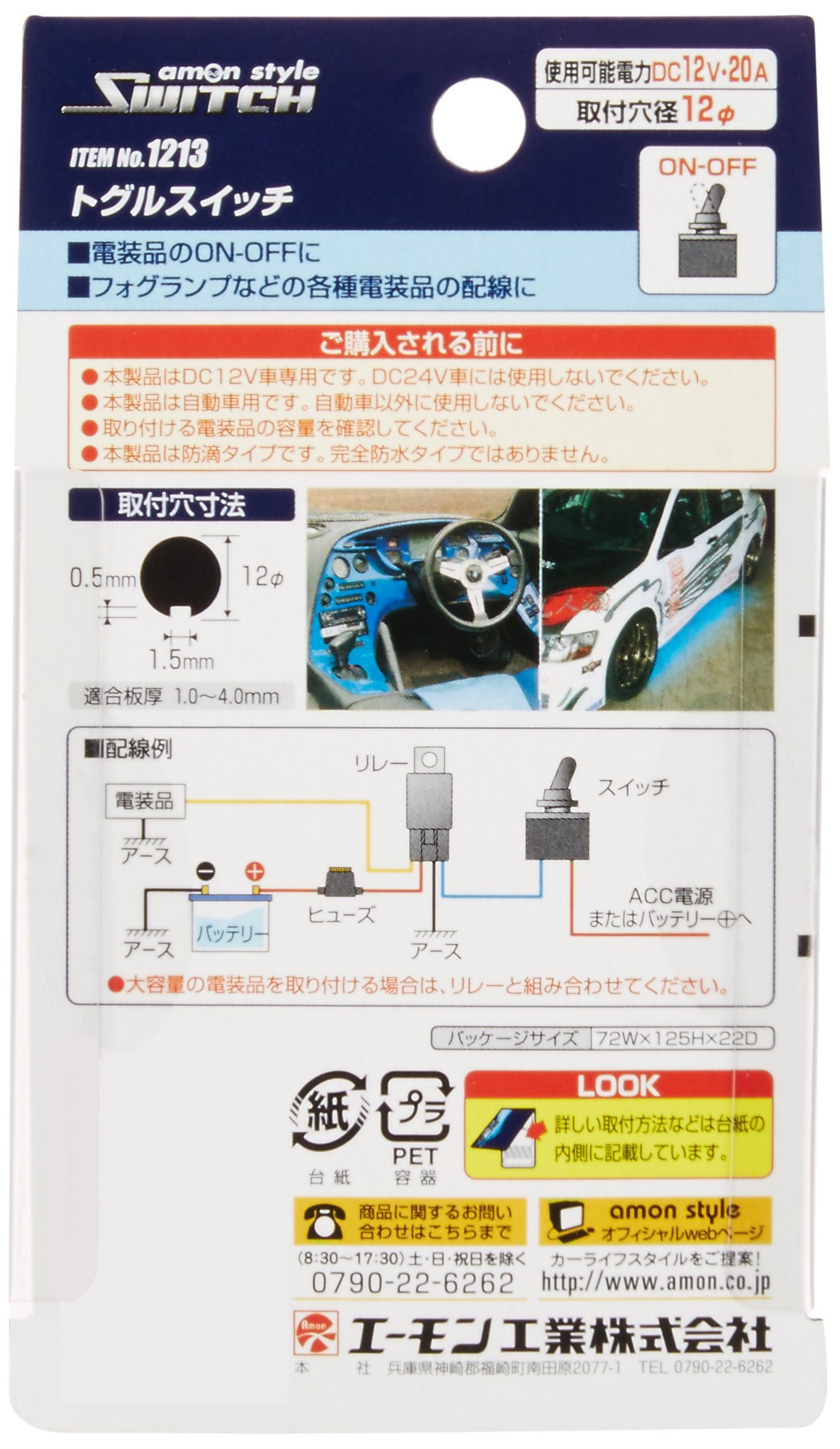 Amon 1213 toggle switch ON-OFF ・ DC12V vehicles only