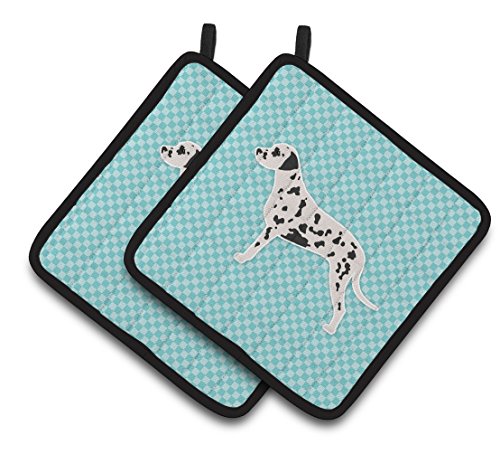 Caroline's Treasures Dalmatian Checkerboard Blue Pair of Pot Holders BB3683PTHD, 7.5HX7.5W, Multicolor