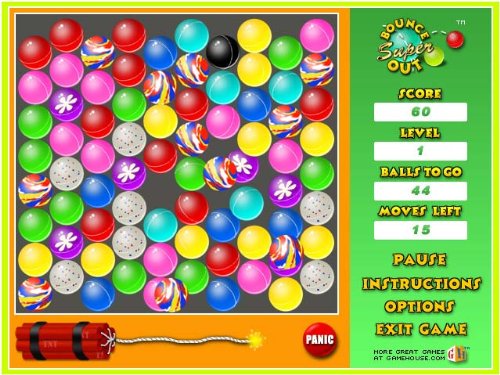 Looking for some high-energy fun? Try Super Bounce Out, the fast paced, super addictive game that will keep you on the edge of your seat. Swap the balls around to match three and stand back as they fly off the screen. Rack up even more points for bigger matches and combinations. But hurry, the fuse is lit and you don't want to blow it!