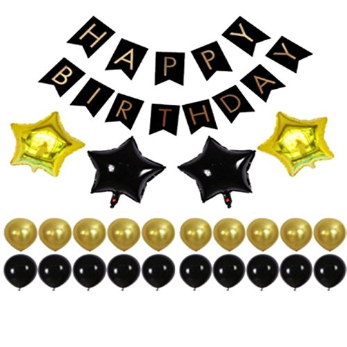 ATTRACTIVE COLORS – These Birthday Party Décor Foil Stars, Banners, and Balloons are made of popular black and gold colors.
