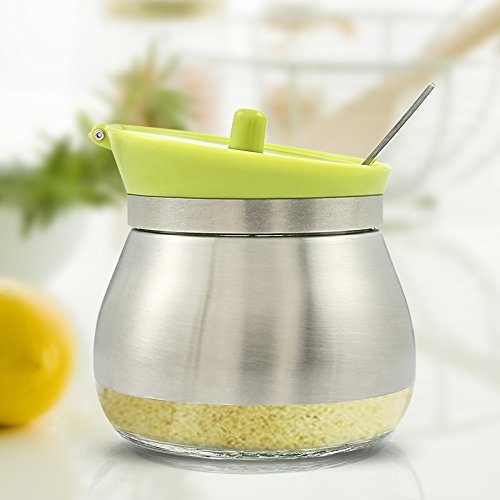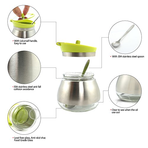 Features - Removable lid, much easier to clean.With food grade 304 stainless steel special spoon, convenient for scoop.Clear body shows fill level, easy to use.