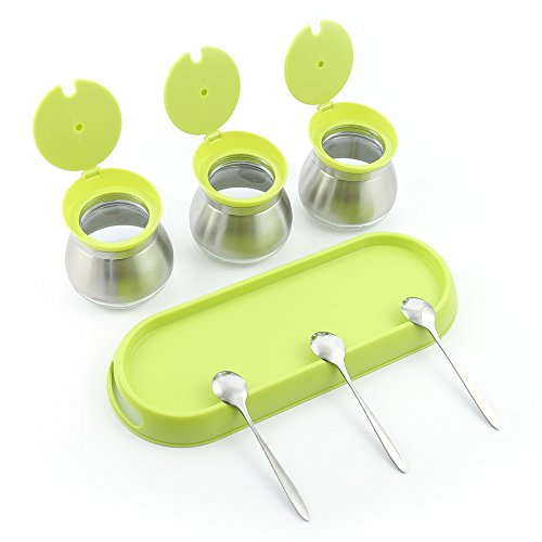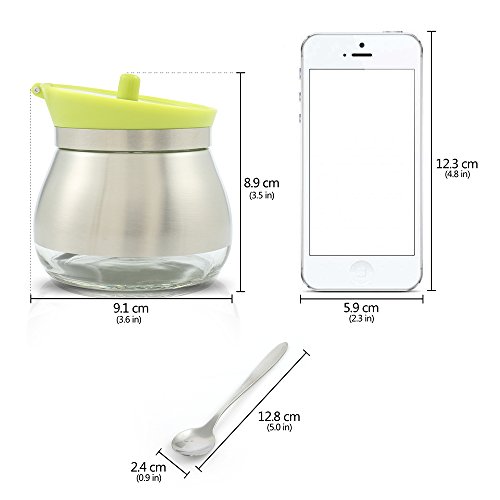 SIZE -Each jar: 9.1 cm/3.6 in*8.9 cm/3.5 in. Capacity:280 ml/9 oz. Stainless Steel Spoon:12.8 cm/5 in.