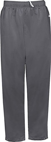 ?100% Brushed tricot polyester ?Covered elastic waistband and drawcord ?Two deep side pockets ?12" Side zippers and open bottom with double hem ?Snaps for tighter and shorter fit ?Embroidered Badger logo on left hip